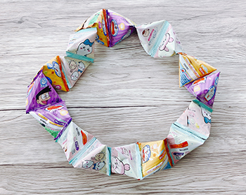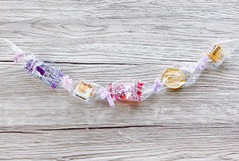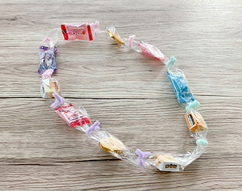 キャンディレイは、ラッピング袋にお菓子を入れてつなげるものが主流ですが、ラッピング袋のいらない超簡単な作り方もあるんです。