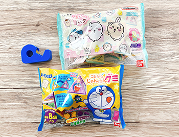 ※今回は「海賊金貨チョコネット入り」「ぷっちょ袋 4種アソート」「サンリオキャラクターズ CANDY」「きなこもち 袋」を使用