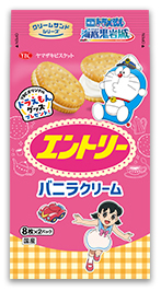 みんな大好きエントリーも、ドラえもんが笑顔で迎えてくれる映画公式コラボパッケージに大変身。軽い食感のクラッカーにバニラクリームという王道の組み合わせは、いつの時代も変わらないドラえもんたちの友情のようです✨