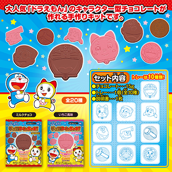 自分の手でドラえもんの形をしたチョコが作れる、体験型のお菓子キットです。