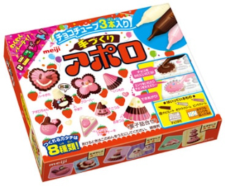 湯せんして溶かしたストロベリーチョコとミルクチョコを、アポロの形をした専用の型に流し込み、冷やし固めるだけで、自分だけのオリジナルアポロが完成します。型は繰り返し使え、デコペンで顔を描いたり、アラザンで飾ったりと、アレンジも自由自在!