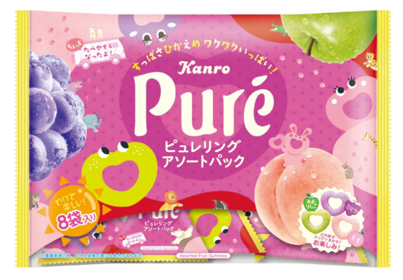 「あ、これハートの形だ!」なんて発見があるのもピュレリングの楽しさ。アソートパックなら複数のフルーツ味が楽しめるので、飽きがきません。