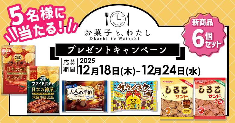 Webマガジン読者様限定で今月の「ライターおすすめお菓子5商品」を抽選5名様にプレゼントいたします!ぜひ応募してくださいね♪