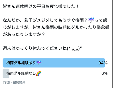 フォロワーさんにアンケート:梅雨のだるさを感じたことがありますか?