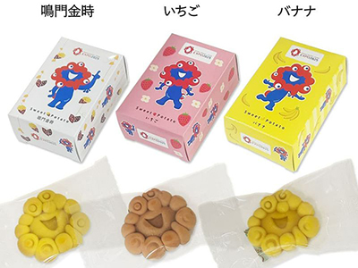 味は3フレーバーで、いちご・バナナ・鳴門金時味です。どれも白あんがはいっていて見た目はかわいくて中身もおいしい、お土産にぴったりなお菓子です♪