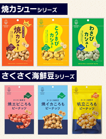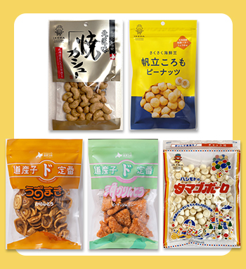 しょっぱさが魅力の代表商品「バタピー」を、ススキノでリアカーを引きながら売り歩いたことからその歴史が始まりました。現在では、「焼カシュー」シリーズや「さくさく海鮮豆」シリーズなど様々な豆菓子を製造しています。
