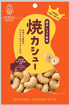 人気No.1の「焼カシュー」は、カシューナッツに米粉と小麦粉のサクサク衣をつけた豆菓子で、カシューナッツと相性抜群な、醤油ダレの甘じょっぱさが人気です。