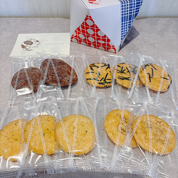 次は、えびせんべいの老舗として名高い「桂新堂」。名古屋を拠点に、百貨店で幅広く展開しているので、ご存じの方も多いと思います。桂新堂といえば、海老そのものの旨みをぎゅっと凝縮したせんべい。ひと口で、海老の香ばしさが口いっぱいに広がるのが特徴です。