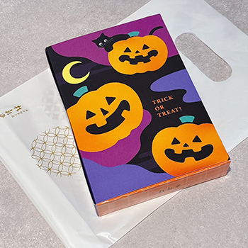 注目すべきは、そのボックスデザイン。表にはかぼちゃのジャック・オー・ランタンやコウモリなどが描かれ、裏面にはまた違うイラストがあしらわれていて、表と裏で印象が変わる楽しさがあるのです。置いておくだけでもインテリアのように華やかで、ちょっとした会話のきっかけにもなりそう。