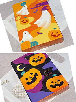 カラフルポップな個包装の数々は、まるでハロウィーンパーティーの宝箱。子どもはもちろん、大人でも思わず笑顔になる仕掛けです。