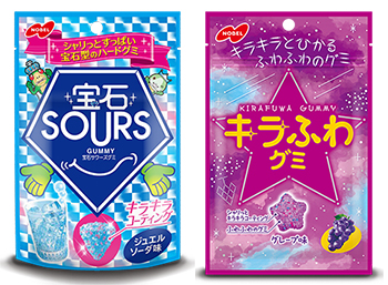 「宝石サワーズグミ ジュエルソーダ味」などがはじまりで、パウダーが味・機能を超えて、食感・デザインまで広がり、グミの遊び心を表現する主役になったと言えます。