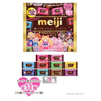 ・内容:原作のイラストがデザインされたコラボパッケージのミルクチョコレートビッグパック。セーラー10戦士がそれぞれデザインされた個包装が入っております。さらにシークレットデザインを加えた全11種のラインナップとなっております。