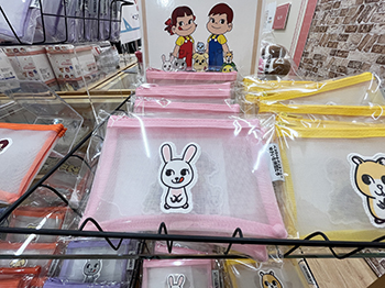 ゲートをくぐるとまず見えるのが不二家のグッズたち。