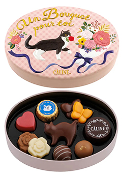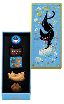色とりどりのチョコとフランスのモチーフは、宝石箱を開けるようなトキメキがあります。ねこがモチーフとなっていて、繊細なプリントチョコも楽しめます。コンビニでの予約販売や、近所のスーパーで手軽に買える「ちょうどいい」贅沢感が、多くのファンに支持されています。