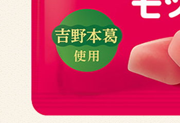 通常、グミの食感にはゼラチンが使われているのですが、この「モッチュ」は和菓子でよく用いられる「吉野本葛」を原料に組み合わせることで、究極のやわらか食感を実現しました。
