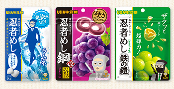 弊社のハードグミと言えば「忍者めし」。「忍者めし鋼 グレープ味」「忍者めし 鉄の鎧 マスカット味」など、見るからに固そうなグミを開発してきました。