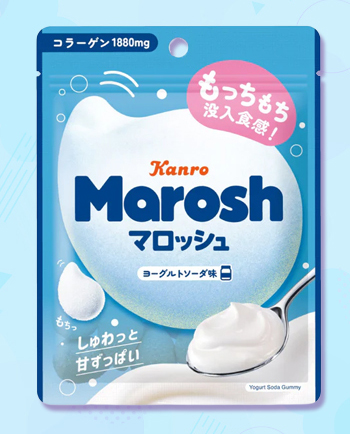 マロッシュは、もちもちとした弾力食感と、シュワっと口どけの良いさわやかパウダーが特長のグミです。