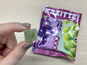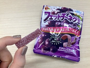 細長く薄いグミですが、しっかりぶどうの味と香りを感じます。