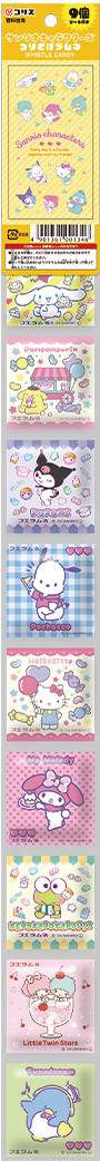 サンリオの人気キャラクターが描かれた吊り下げタイプ。一袋ずつ切り離して配れるので、子供たちの集まりで大活躍します。ラムネは溶ける心配がなく、一口サイズでボロボロこぼれることもありません。